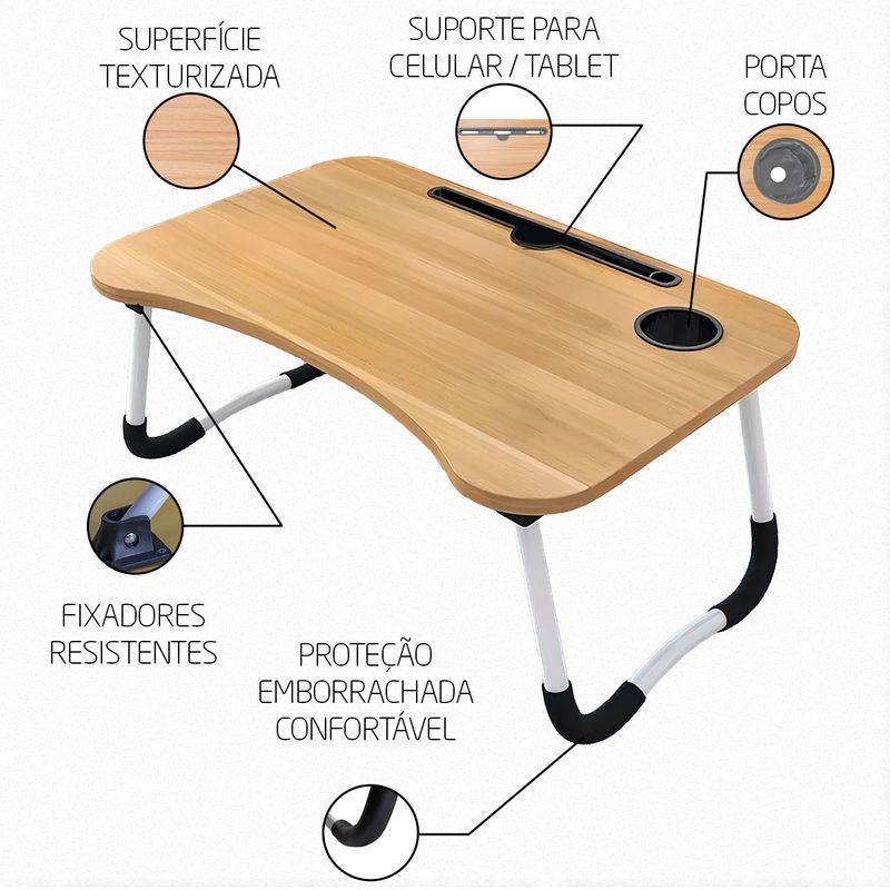 A Mesa Portátil Para Notebook Suporte Cama Sofá Madeira é ideal para quem busca conforto e praticidade ao usar notebook na cama, sofá ou em qualquer ambiente da casa.