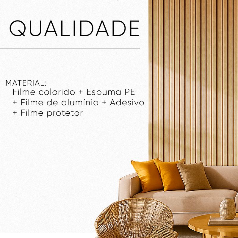 Transforme sua decoração com o Painel Ripado Auto Adesivo Flexível, uma solução prática, elegante e duradoura. Produzido com filme colorido, espuma PE e adesivo de alta fixação + Filme protetor, ele garante instalação rápida, sem sujeira e sem necessidade de mão de obra especializada.