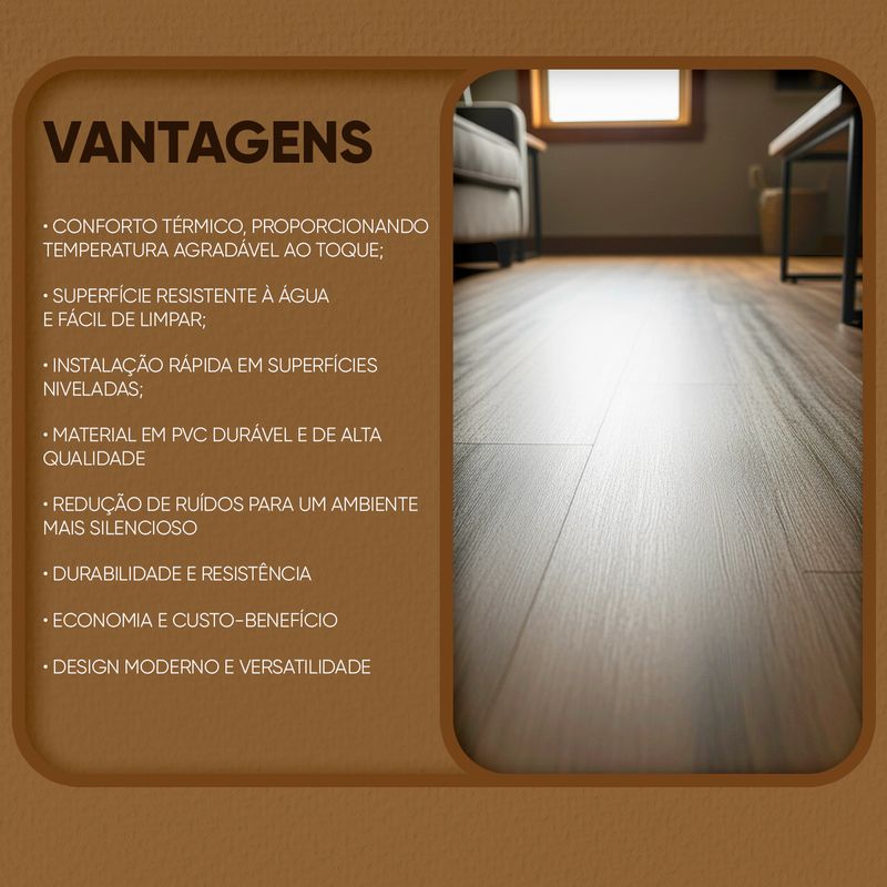 O Piso Vinílico em Manta é a escolha perfeita para quem busca um revestimento moderno, funcional e de fácil instalação. Confeccionado em PVC de alta qualidade, ele proporciona conforto térmico, suavidade ao toque e uma superfície resistente à água.