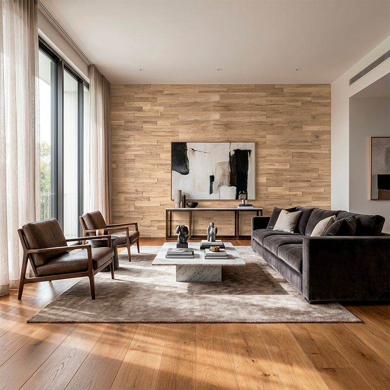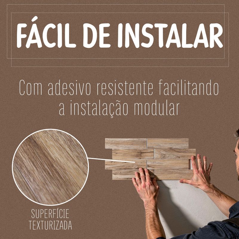 Revestimento Modular Adesivo De Parede Efeito Madeira - Cor: Carvalho