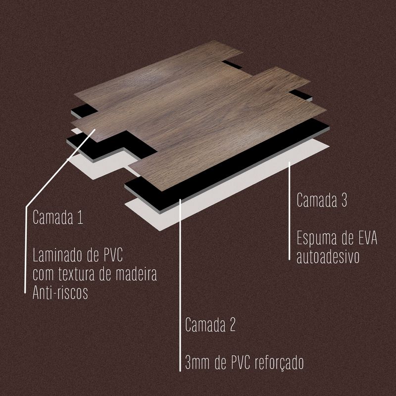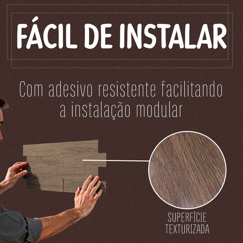 Revestimento Modular Adesivo De Parede Efeito Madeira - Cor: Nogueira