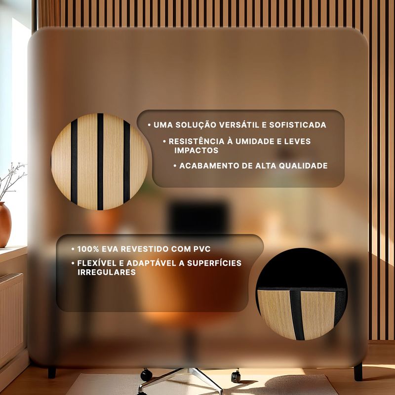 Transforme seus ambientes com o Painel Ripado Flexível Autoadesivo, um revestimento moderno, versátil e de alta qualidade. Feito de PVC, EVA e Adesivo, esse painel permite uma instalação rápida e eficiente. Com ele, é possível criar ambientes sofisticados e aconchegantes sem grandes reformas.